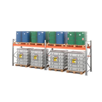 Две секции стеллажа металлического паллетного 2000х1800х1100 мм (100.1.5). Ярусы: пол+1
