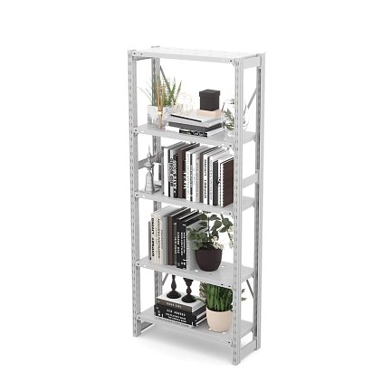 Стеллаж комплектуется перфорированными металлическими полками, покрыт порошковой полимерной краской светло-серого цвета (RAL 7035).